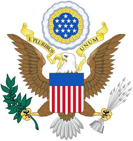 I jeszcze jedno. To nieoficjalne godło Stanów Zjednoczonych, przez ich mieszkańców nazywane Wielką Pieczęcią. W Polsce nie jest ona tak znana jak amerykańska flaga ale przecież dla Amerykanów jest równie ważna. Wielka Pieczęć znajduje się między innymi na dywanie w Gabinecie Owalnym w Białym Domu, na jej tle przemawia zwykle prezydent USA.