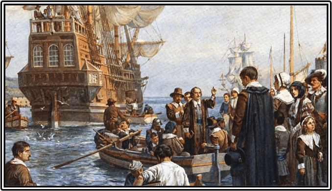 Zaraz zaraz, ale miało być o Stanach Zjednoczonych. No więc… Rok 1620. Czasy, kiedy największą morską i kolonialną potęgą w Europie była Hiszpania już się skończyły. W miejscu nazywanym dziś Plymouth Rock na wschodnim wybrzeżu Ameryki Północnej, w pobliżu dzisiejszego miasta Boston do brzegu przybija niewielki angielski statek handlowy Mayflower.
