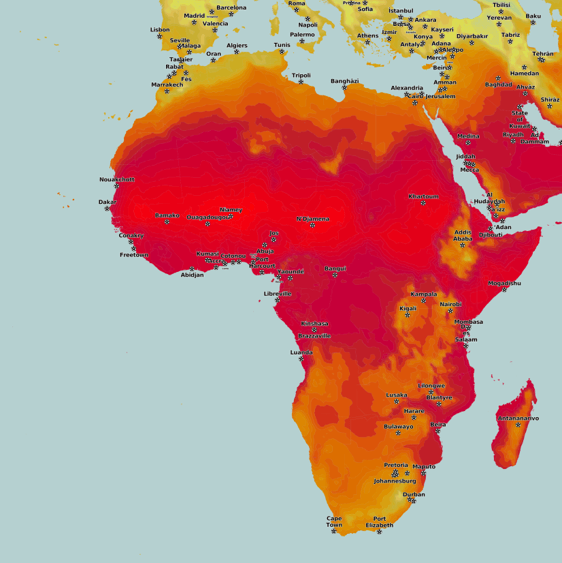 Afryka najczęściej kojarzy nam się z gorącem. I słusznie. W miesiącach letnich na Saharze ponad 40°C to codzienność a w większości innych miejsc jest niewiele chłodniej. Jedynie na terenach położonych najdalej na północy lub południu temperatury bywają niższe, ale i tak jest tam cieplej niż w odpowiednich porach roku w Europie. Zresztą co do pór roku to lato jest tam wtedy kiedy u nas jest zima a zima wtedy kiedy u nas jest lato. Wszystko przez to że Afryka leży na półkuli południowej.
