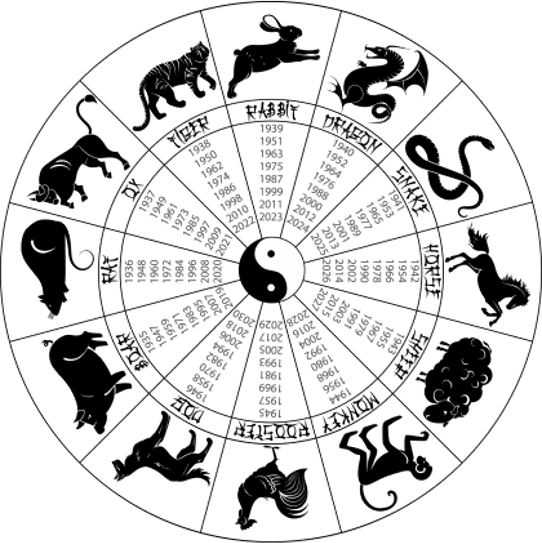 W każdym razie kolejność byłą ostatecznie następująca: Szczur, Wół, Tygrys, Królik, Smok, Wąż, Koń, Koza, Małpa, Kogut, Pies, Świnia. Takie właśnie są znaki chińskiego horoskopu. Różni się on tym od najpopularniejszego u nas horoskopu rzymskiego że liczy się nie dzień i miesiąc ale rok urodzenia. Jeśli wiec wszystkie osoby w klasie urodziły się w tym samym roku to wszystkie mają ten sam znak zodiaku. No, prawie. Ponieważ, o czym było przed chwilą, chiński Nowy Rok wypada trochę później niż u nas i dlatego osoby urodzone w styczniu i na początku lutego prawdopodobnie należą jeszcze do znaku z poprzedniego roku. Dokładne daty panowania poszczególnych znaków tak samo jak przypisywane im cechy i wróżby na przyszłość można łatwo znaleźć w Internecie.
