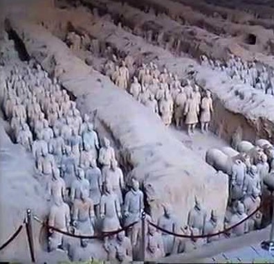 W mieście Xi’an w środkowych Chinach można zobaczyć inny legendarny chiński zabytek. Terakotowa armia została znaleziona w grobowcu jednego ze starożytnych cesarzy. Składa się z ponad ośmiu tysięcy figur przedstawiających różne formacje żołnierzy a także konie. Każda z figur ma własny niepowtarzalny wygląd. Jeszcze w momencie odkrycia figury były kolorowe. Niestety szybko utraciły kolory pod wpływem słońca kiedy wydobyto je na powierzchnię.