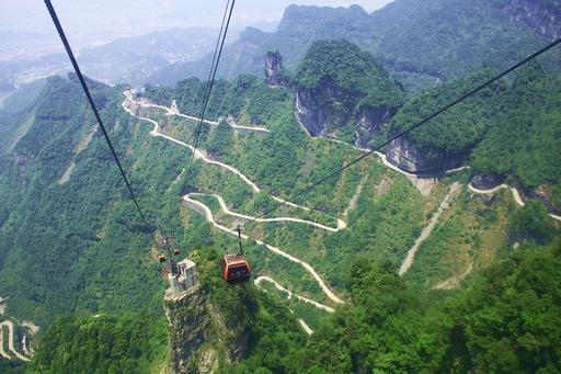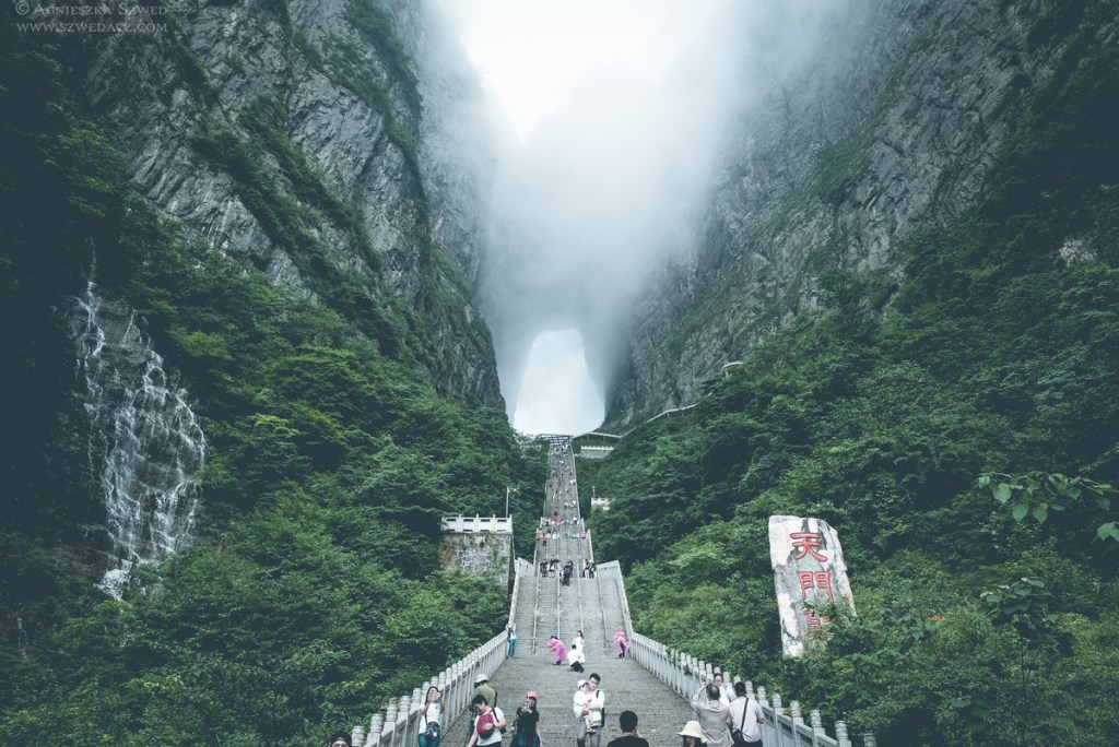 Góra Tianmen to atrakcja dla ludzi o mocnych nerwach. Właściwie nie jest wcale taka wysoka. Daleko jej do Rysów, nawet od Giewonta jest sporo niższa. Na szczyt można dostać się najdłuższą na świecie kolejką linową. Widoki podobno są fantastyczne, choć na pewno nie dla tych którzy maja lęk wysokości. Można tez wjechać autobusem ale wtedy trzeba przejechać drogą zwaną Tongtian, czyli Drogą Do Nieba która jest bardzo stroma a znajduje się na niej aż 99 ostrych zakrętów. Ta opcja dla wielu jest jeszcze bardziej przerażająca.