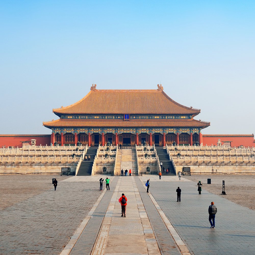 Oto najbardziej rozpoznawalny widok w Pekinie. Pałac cesarski, a właściwie jedna z jego części. Znajduje się on na terenie tak zwanego Zakazanego Miasta. Dlaczego Zakazanego. Ponieważ wstęp do niego mieli jedynie członkowie rodziny cesarskiej i nieliczni dostojnicy. Na terenie ogromnego kompleksu znajdują się liczne pałace, świątynie, pawilony, ogrody.