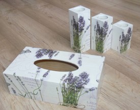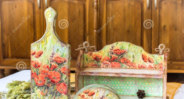 Z decoupage. Ta technika zdobnicza której głównym elementem jest przenoszenie na ozdabiany przedmiot wzorów ze specjalnych serwetek tak naprawdę pochodzi z Rosji. Francuzom jednak zawdzięczamy jej spopularyzowanie (czyli to u nich podpatrzyli ją inni). Najczęściej ozdabia się w ten sposób przedmioty z drewna lub szkła, ale można spotkać też decoupage na glinie a nawet styropianowych bombkach choinkowych.