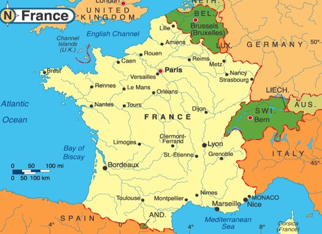Stolicą Francji jest Paryż. Warto wspomnieć również o innych większych i bardziej znanych miastach takich jak : Lyon, Marsylia (Marseille), Nicea (Nice), Tuluza, Nantes, czy Bordeaux