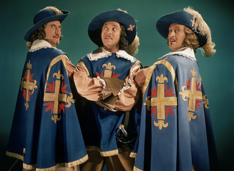 Początek XVII wieku (około 400 lat temu). Do Paryża przybywa młody, dzielny i nieco lekkomyślny d’Artagnan marzący o wstąpieniu w szeregi muszkieterów – elitarnego oddziału gwardii królewskiej. Niemal od razu po przyjeździe nieopatrznie wdaje się w kłótnie aż z trzema członkami owej gwardii: Atosem, Portosem i Aramisem.