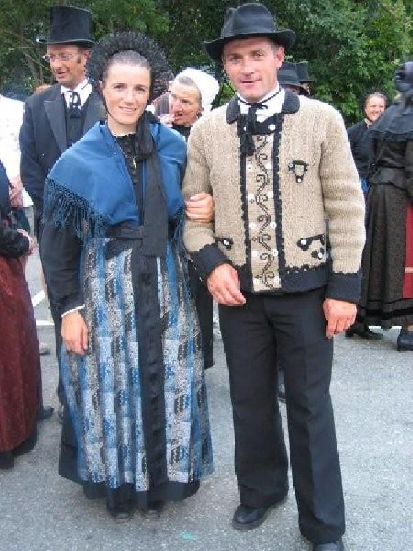 A co do tradycji. Tradycyjny strój francuskiej kobiety składa się z szerokiej, najczęściej jednokolorowej spódnicy, obcisłego gorsecika, fartuszka, chusty na ramiona i czepka. Stroje panów są dość różnorodne w zależności od regionu ale najczęściej są proste, bez zbyt wielu ozdobników i mają krawat i kapelusz.