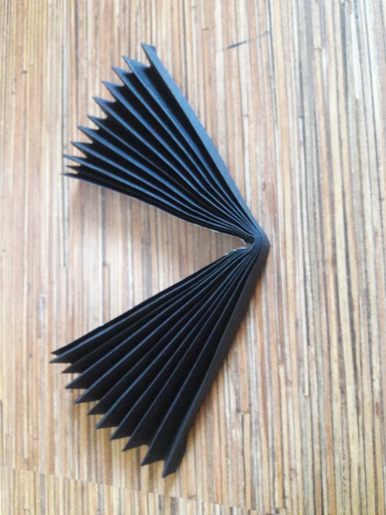 Cienką kartkę zwijamy w harmonijkę wzdłuż krótszego boku. Harmonijkę składamy na pół
