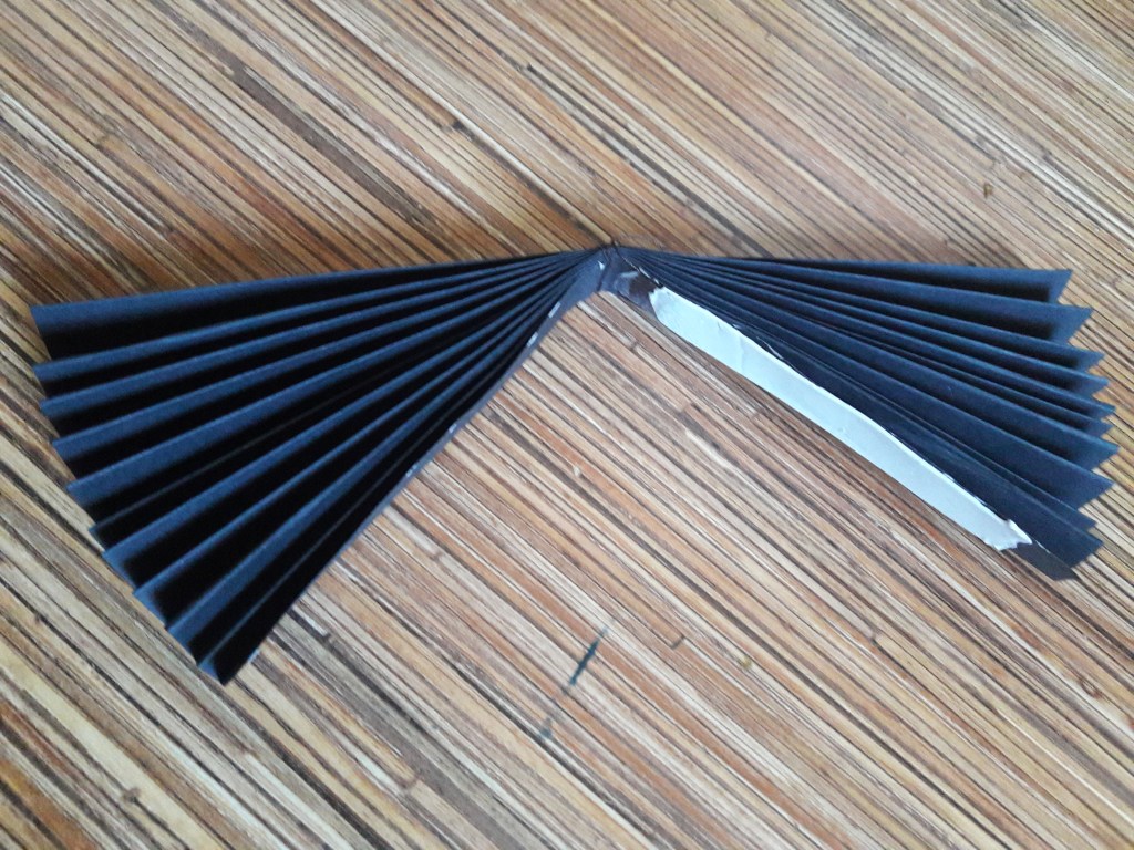 Przyklejamy taśmą lub mocnym klejem po obu stronach harmonijki