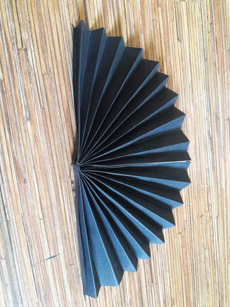 Związujemy nitką. Sklejamy taśmą dwustronną. (Naprawdę cienki papier utrzyma się na kleju). Rozkładamy.
