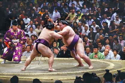 Sumo czyli narodowy japoński sport. Niby zasady są proste. Dwóch zawodników walczy ze sobą na glinianym podeście zwanym dohyo. Właściwym miejscem walki jest koło wyznaczone przy pomocy powroza ze słomy ryzowej. Przegrywa ten kto albo wyjdzie poza koło albo dotknie podłoża jakąkolwiek częścią ciała inna niż stopy. Ale…nie byłaby to Japonia gdyby to było ta łatwo. Zawodnicy sumo są w Japonii bardzo ważnymi i znanymi osobistościami. Są zobowiązani do przestrzegania szeregu zasad. Dotyczą one nie tylko treningów i specjalnej diety która pozwala im zachować charakterystyczną hmm… bardzo wysportowaną sylwetkę ale przede wszystkim przykładnego stylu życia.