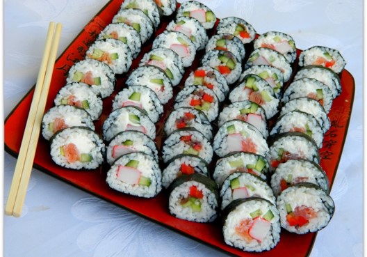 Sushi. No cóż, jedni lubią inni nie. Kuchnia japońska ma swoja specyfikę. Nie każdy łatwo przekonuje się do surowych ryb czy owoców morza i wodorostów. W Japonii przed rozpoczęciem posiłku w towarzystwie tradycyjnie wypowiada się formułkę będącą podziękowaniem dla wszystkich którzy włożyli swoją pracę w przygotowanie dania, czyli kucharzy ale tez na przykład rybaków, rolników. .