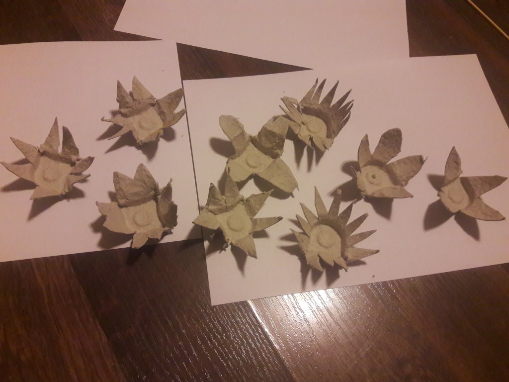 Rozcinamy wytłaczarkę na pojedyncze „kubeczki” i obcinamy niepotrzebny papier dookoła tak aby miały jak najbardziej okrągły kształt. Wycinamy z nich kształty kwiatków