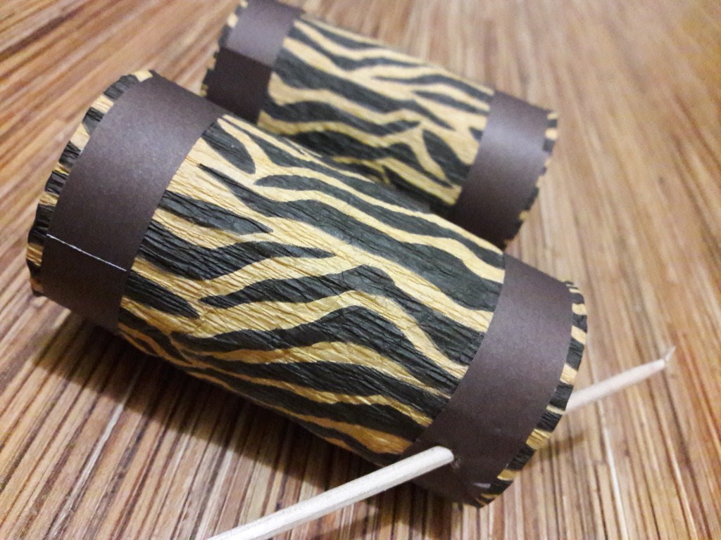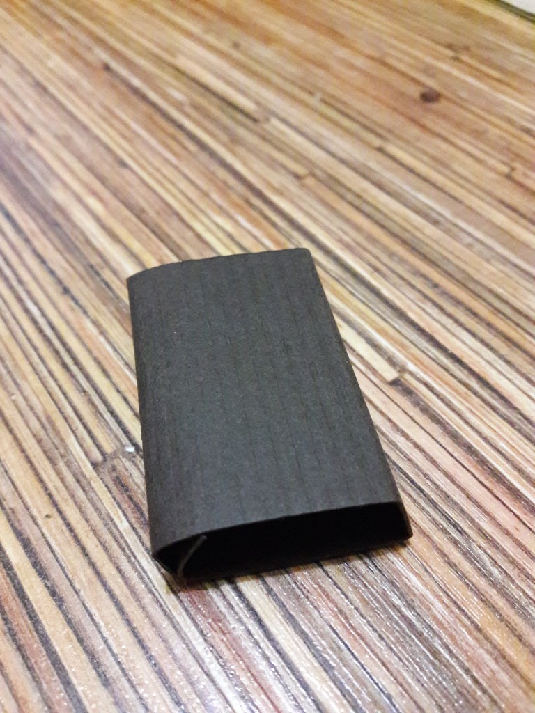 Z tekturki wycinamy pasek który składamy na kształt pudełka. Łączymy nim rurki za pomocą dwustronnej taśmy klejącej