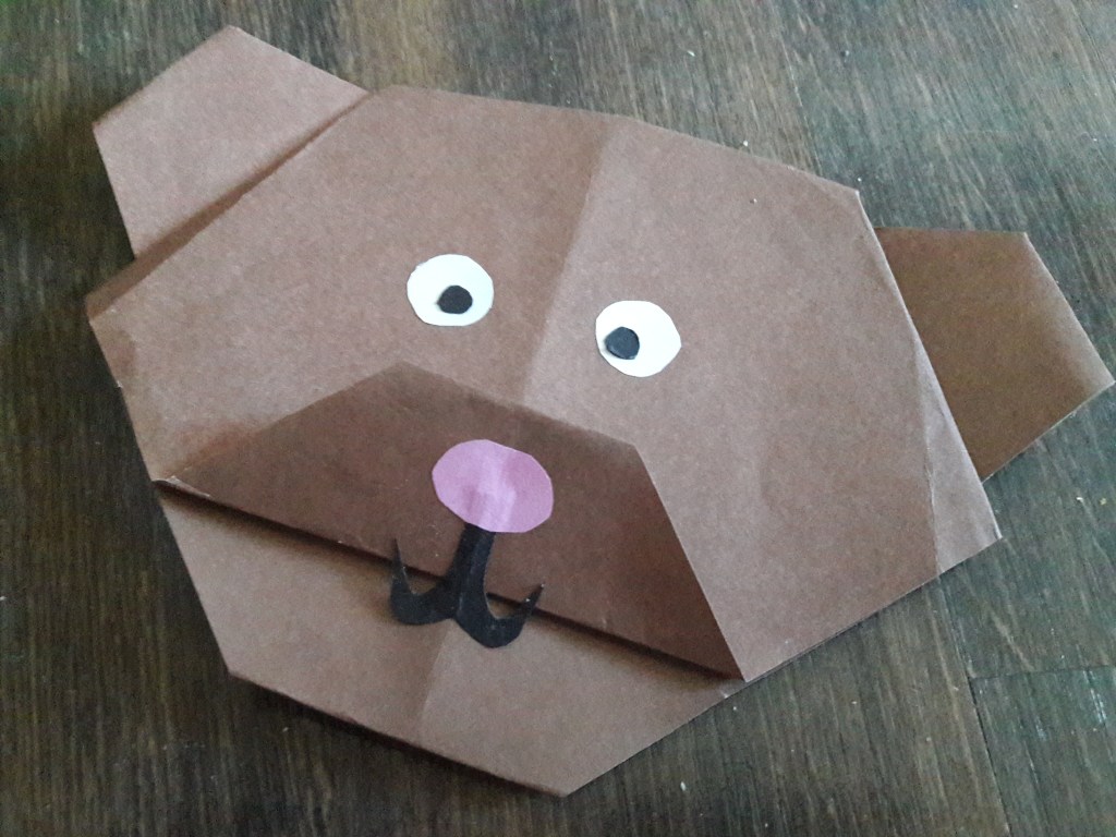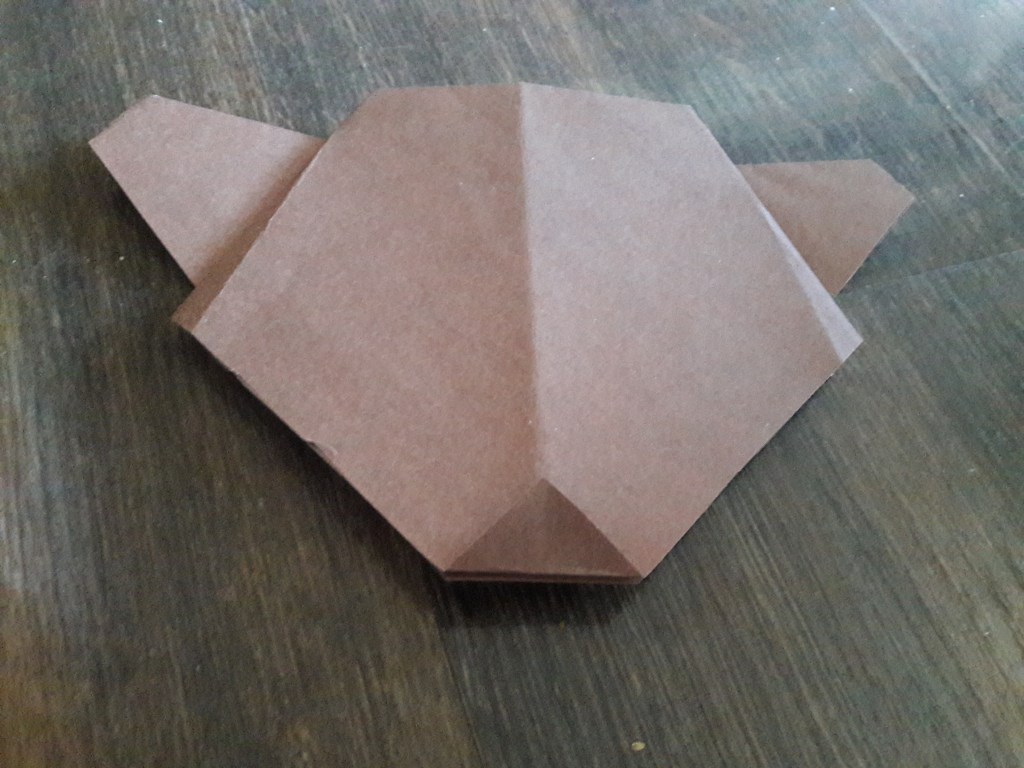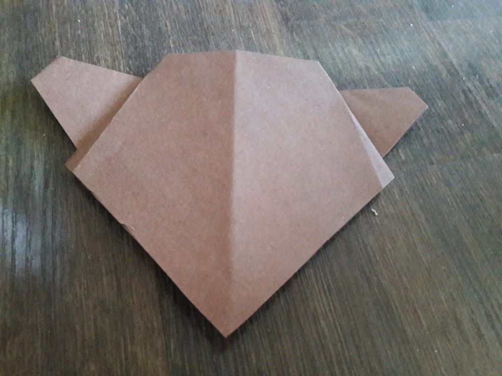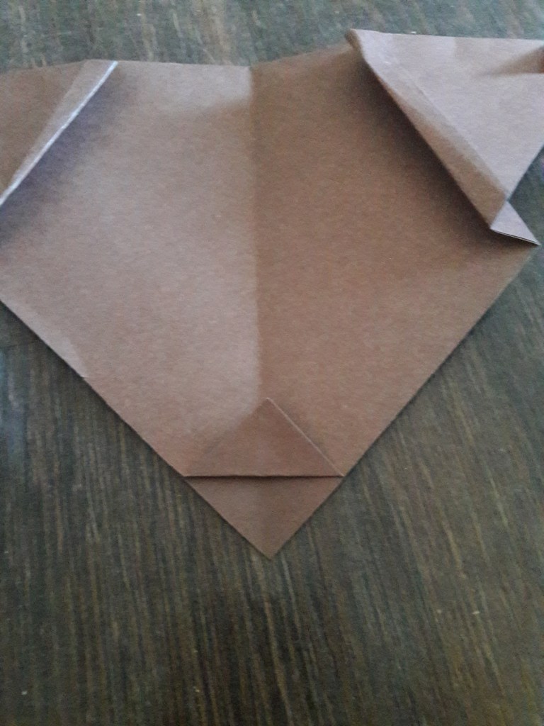 Kwadrat z brązowego papieru składamy na pół. Następnie jeszcze raz składamy na pół i rozkładamy