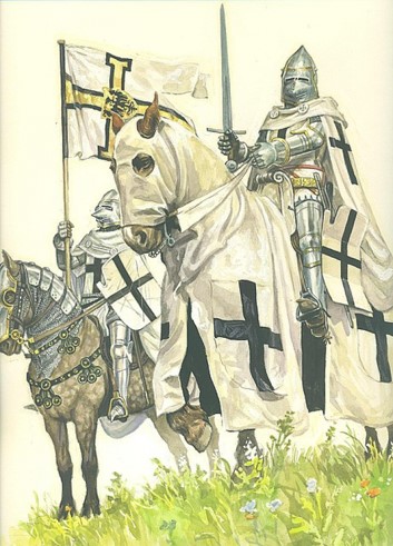 No dobrze, a skąd oni wzięli się w Polsce? Otóż właśnie w roku 1226 władca jednego z państewek na które Polska była wówczas rozbita (mniejsza o to dlaczego, to trochę zbyt skomplikowane żeby teraz o tym pisać) książę Konrad Mazowiecki zaprosił Krzyżaków na swoje ziemie. Liczył na troi ze bogobojni rycerze pomogą mu w podporządkowaniu sobie ziem pogańskich Prusów których ziemie graniczyły z jego państwem na północy. Bogobojnie rycerze w walce z Prusami okazali się nad wyraz skuteczni ale niestety „pożyczoną” im przez księcia ziemię bardzo szybko przejęli na własność (w bardzo brzydki sposób nabierając papieża na sfałszowany dokument) i z czasem na odebranych Prusom terenach utworzyli silne państwo, z którym od tej pory przez dobre parę wieków mieliśmy same kłopoty. I nie pomogło wiele nawet wielkie zwycięstwo sił polsko-litewskich dowodzonych przez Władysława Jagiełłę w bitwie pod Grunwaldem.