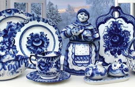 Uznaniem cieszy się też gżel czyli wyroby z porcelany powstające w okolicach podmoskiewskiej wsi o tej samej nazwie pomalowane w niebieskie wzory. Tradycyjnie mają kolor biały i są pomalowane z ciemnoniebieskie wzory.
